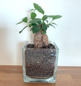 購入当初、そのガジュマルは根本が太く、まるで太もものような形がとてもユニークで可愛かったので、思わず「プリティ」と名付けました!
